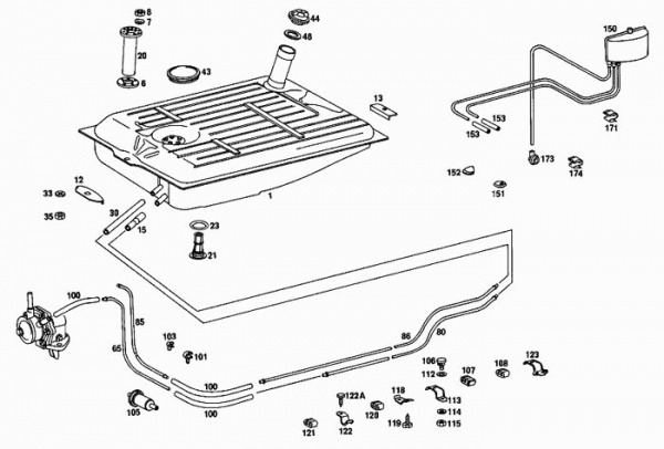 | - | *Bild Nr. 153: Kraftstoffschlauch als Meterware ([http://teilesuche.mercedes-benz-classic.com/parts/A2014761126 A201 476 1126]) | + | *Bild Nr. 153: Kraftstoffschlauch als Meterware ([http://teilesuche.mercedes-benz-classic.com/parts/A2014761126 A201 476 1126]), (man kann auch Kraftstoffschlauch aus Handelsware nehmen: 2 Stück mit je 4 mm Innendurchmesser). |