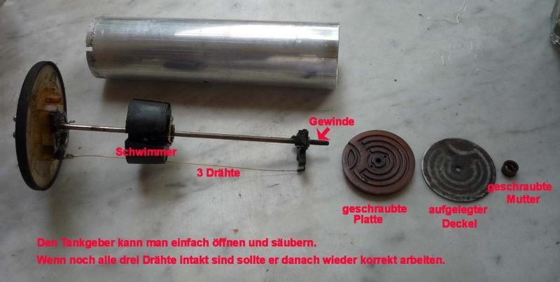 Und zur Veranschaulichung ein Foto der Innereien eines Tankgebers mit seinen Funktionselementen (Dank an Kollegen Michael aus Köln):