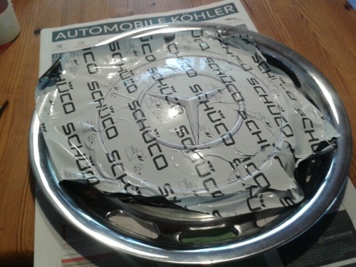 Zunächst die blanke Radkappe, es ging mir hier nur ums Abkleben: