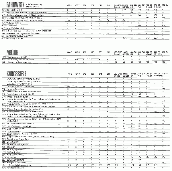 Übersicht: Ausstattungscodes