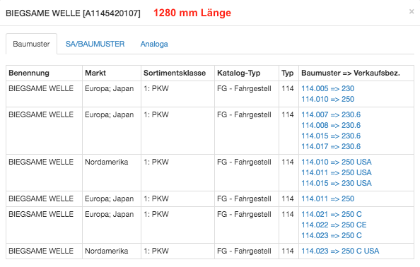 Fallweise wurden im Laufe der Zeit "Baumuster-überspringende" Austausch-Varianten festgelegt: Z.B. Statt A1155420507 die Nummer A1145420307.